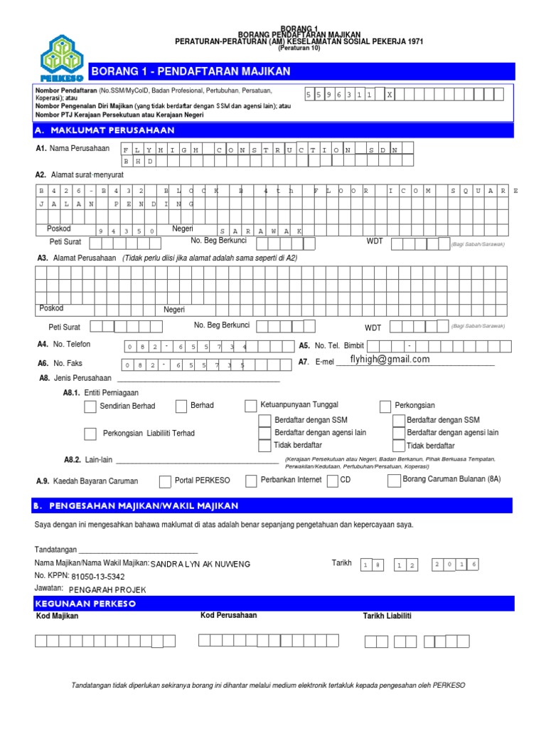 Borang Sip 1 Borang Pendaftaran Majikan A Maklumat Perusahaan Borang Sip 1 Borang Pendaftaran Majikan