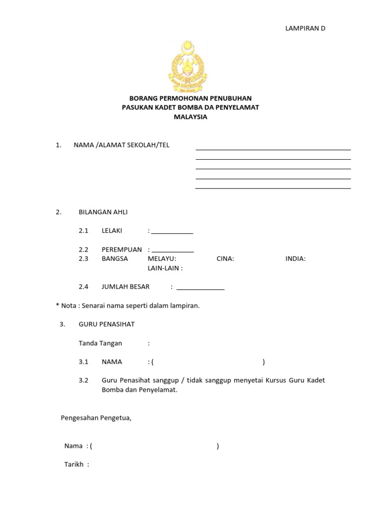 Borang Permohonan Sebagai Anggota Kadet