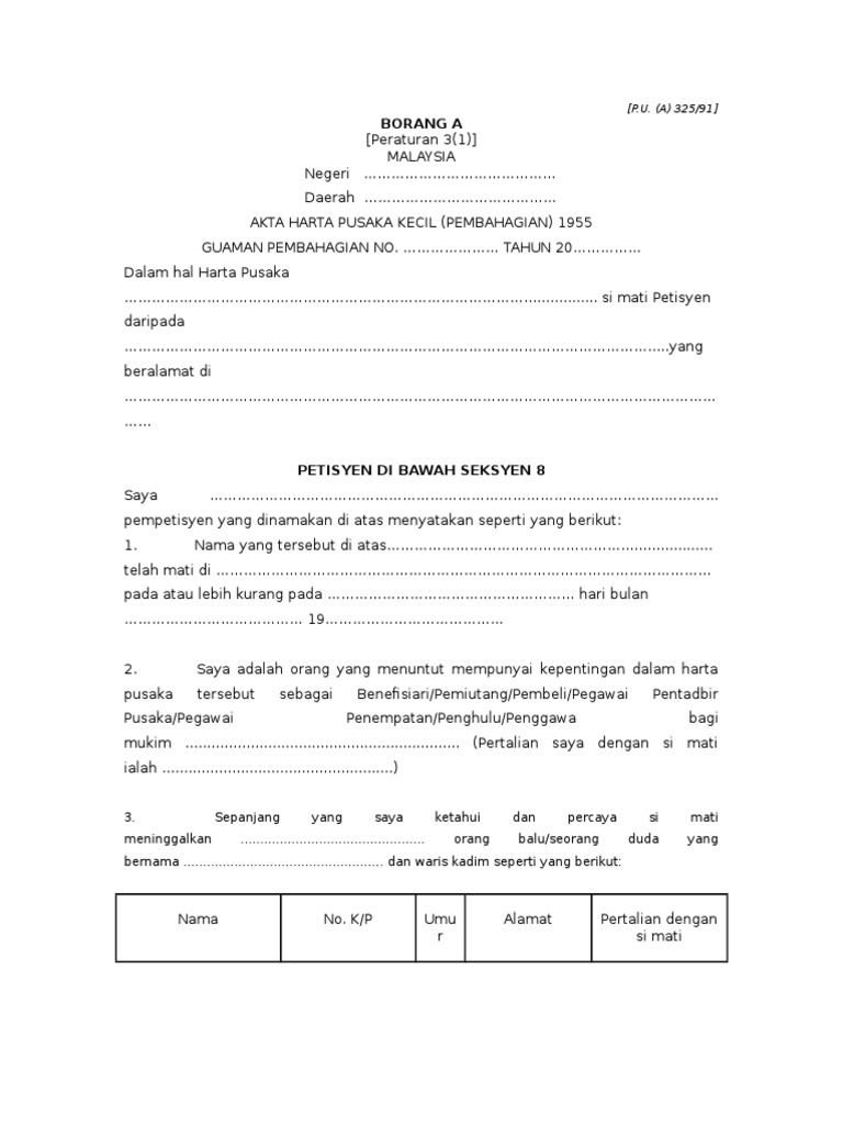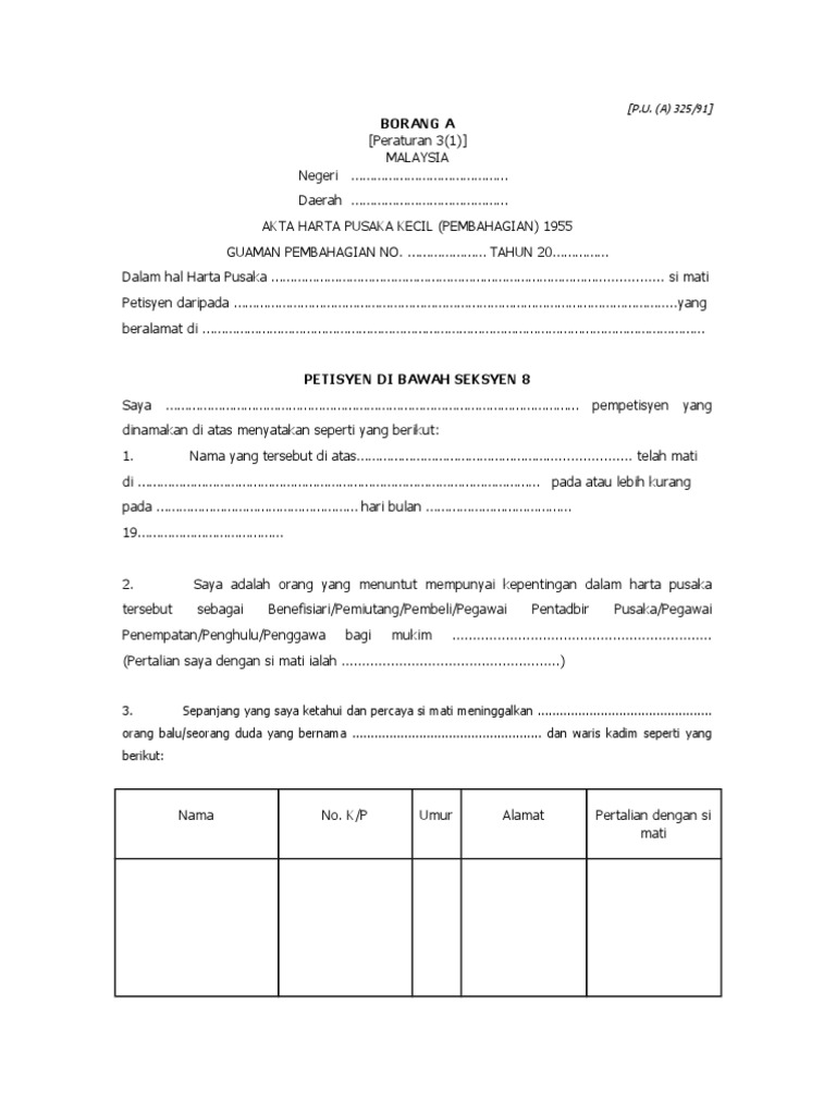 Borang A Permohonan Awal Seksyen 8 1 Doc