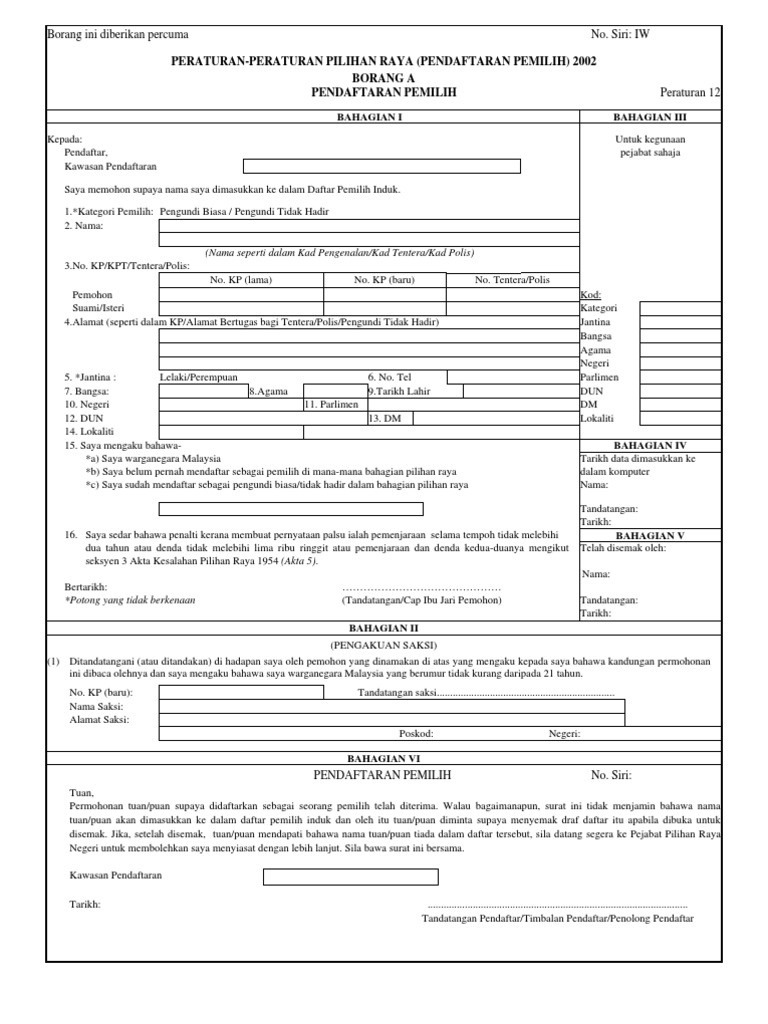 Borang A Iw Daftar Spr