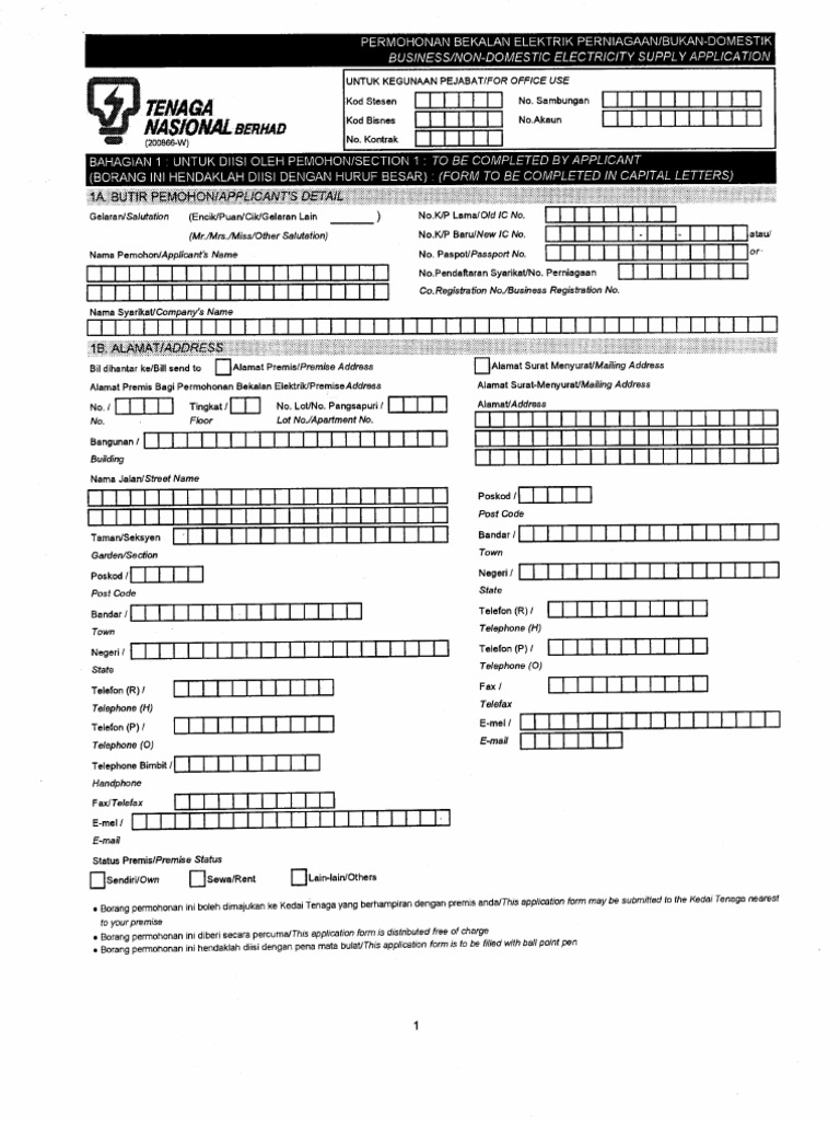 Hin Yeap Electrical Works Electrical Contractor Tnb Application Form Business Non Domestic Borang Permohonan Tnb Bekalan Elektrik Perniagaan Buka Blog