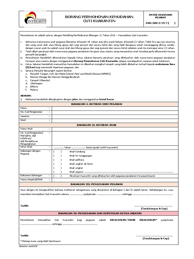 Pdf Agc Permohonan Cuti Kuarantin Borang Kemas Kini Ogos 2017 Syafiq Rahman Academia Edu