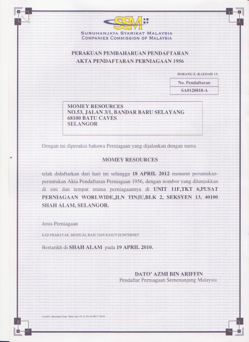 Perakuan Pendaftaran Perniagaan Borang D Ssm Kosong