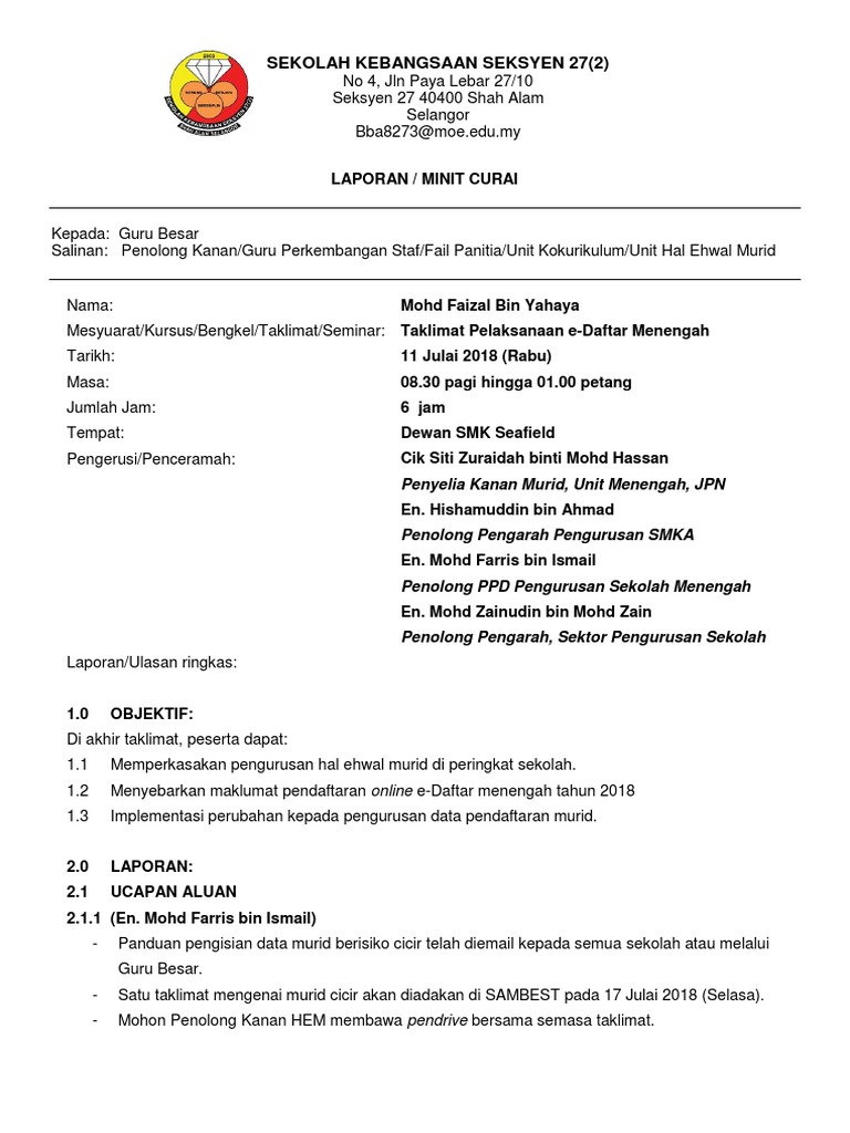 Minit Curai Taklimat Pelaksanaan Edaftar Menengah Docx