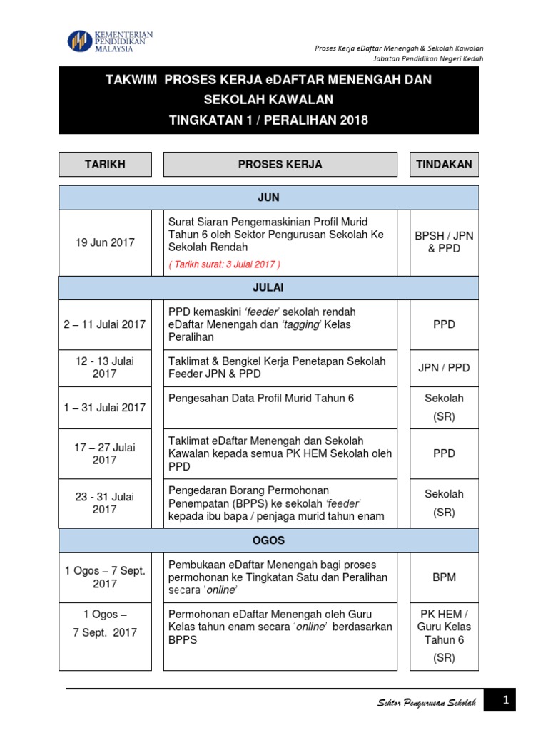 Master Carta Alir Proses Kerja Edaftar Menengah Dan Sekolah Kawalan 2018 Kedah 1