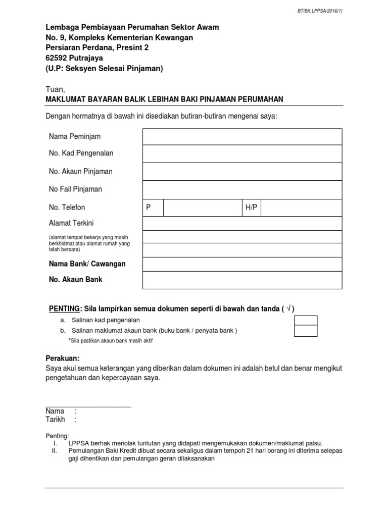 Borang Permohonan Pinjaman Perumahan Lembaga Pembiayaan Perumahan Sektor Awam 2