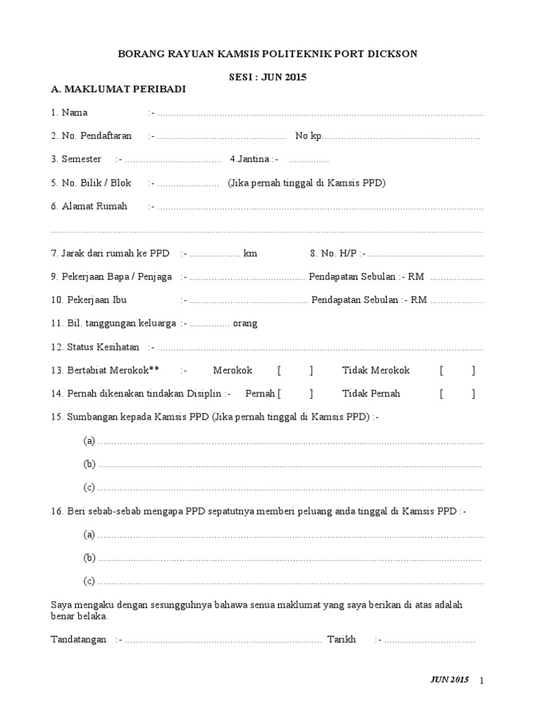 Borang Rayuan Kamsis Politeknik Port Dickson 1