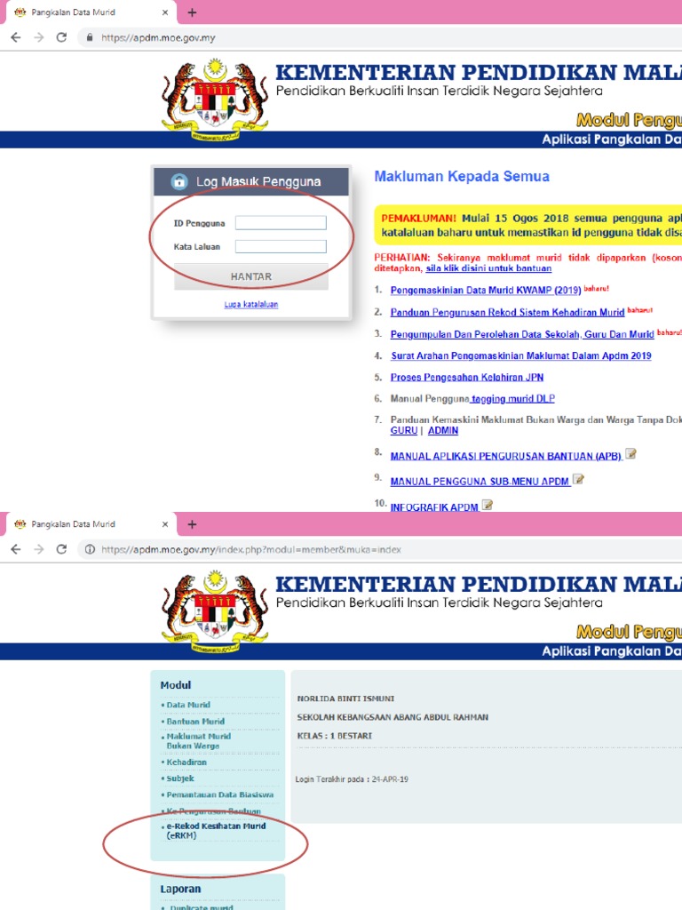 Log In Password Admin Klik E Rekod Kesihatan Murid E Rkm