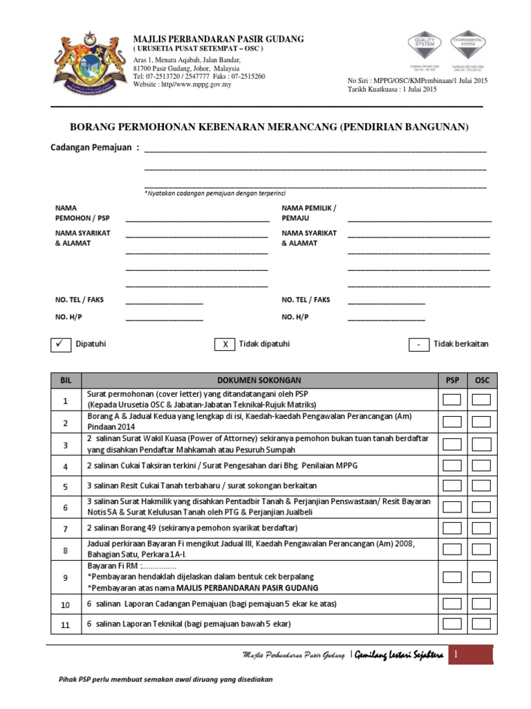 E Borang Kebenaran Merancang Pendirian Bangunan