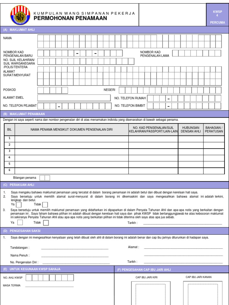Form Borang A Kwsp