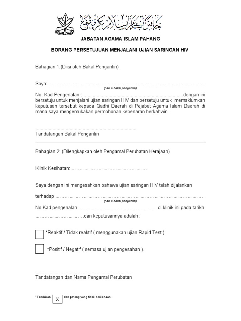Borang Persetujuan Jalani Saringan Hiv2 Pdf