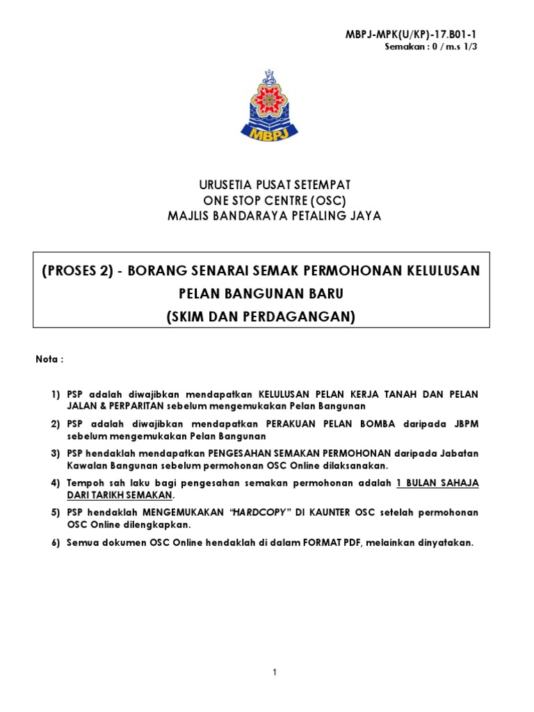 Pbb05 Borang Permohonan Kelulusan Pelan Setara Mbpj Majlis