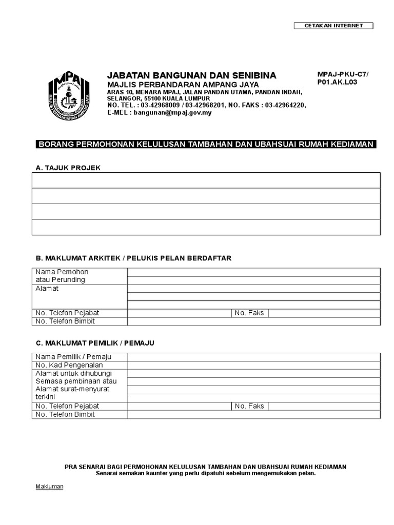 Http Www Mpaj Gov My Sites Default Files Mpaj Resources Download Forms Building And Architecture Department Borang 1c Borang Permohonan Ubahsuai Premis Makanan Pdf
