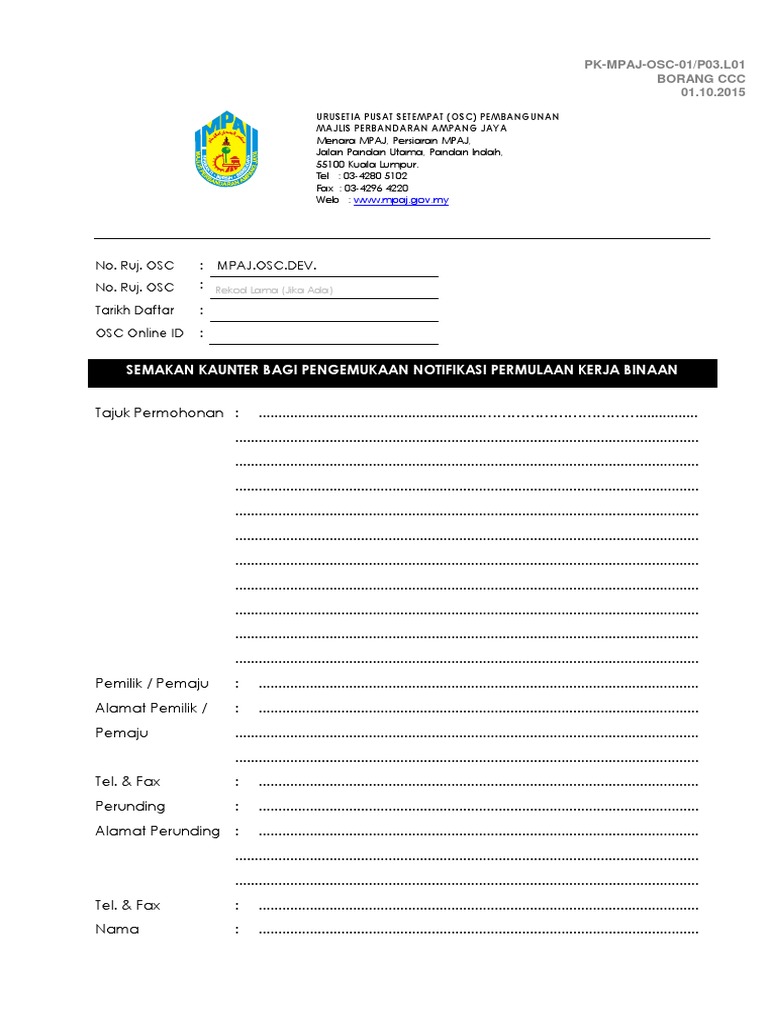 Borang Pendaftaran Osc Rekod Lama Jika Ada