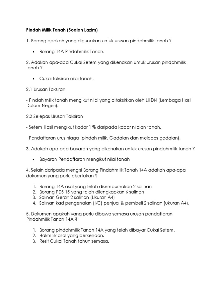 Ceritapasaltanah Riwayat Perjalanan Borang 14a Aka Pindahmilik Tanah