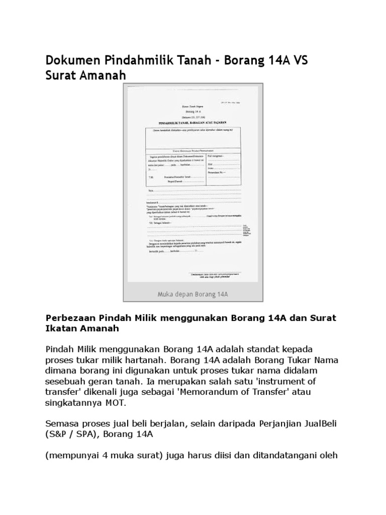 Hanya Sekadar Perkongsian Dokumen Pindahmilik Tanah Borang 14a Vs Surat Amanah