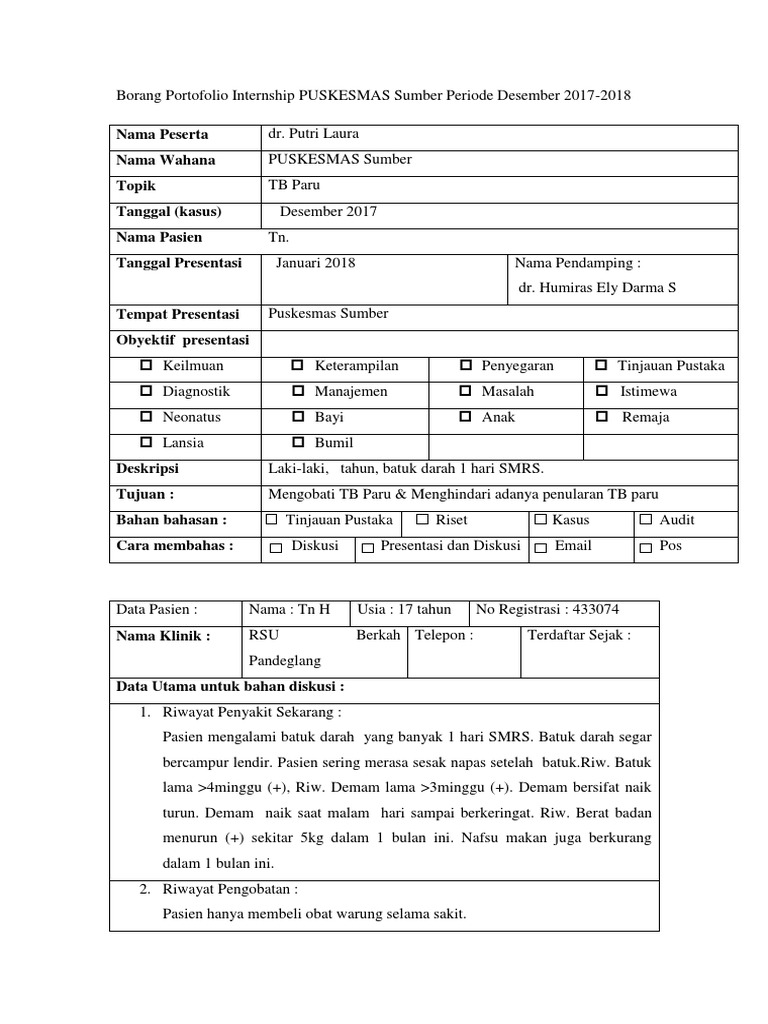 Borang Portofolio Internship Puskesmas Sumber Periode Desember 2017