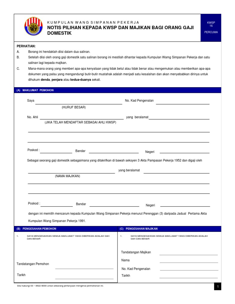 Kwsp 16 Notis Pilihan Org Gaji Domestik