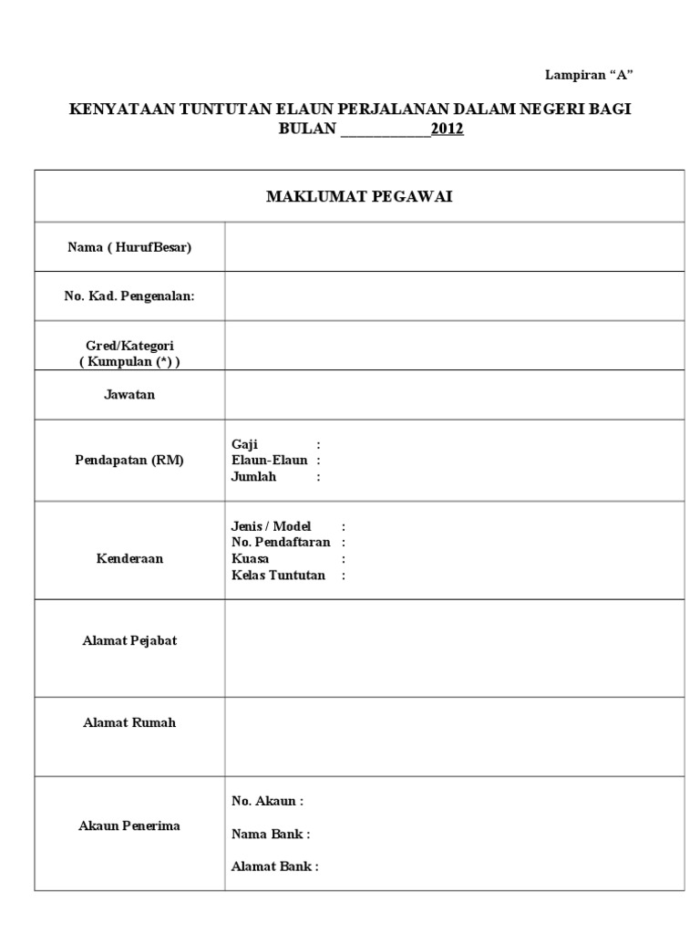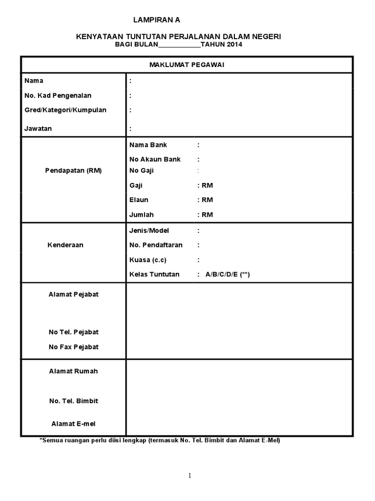 Doc Borang Tuntutan Elaun Perjalanan Dalam Negeri Samuel Louis Academia Edu