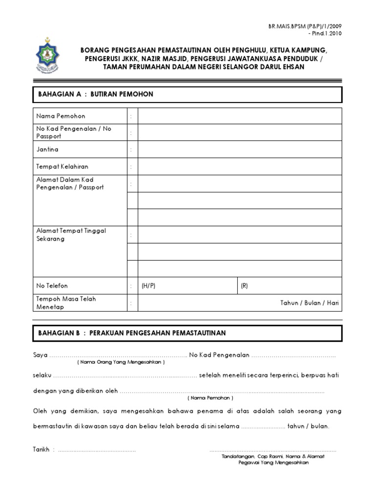 Contoh Surat Pengesahan Mastautin Di Negeri Selangor