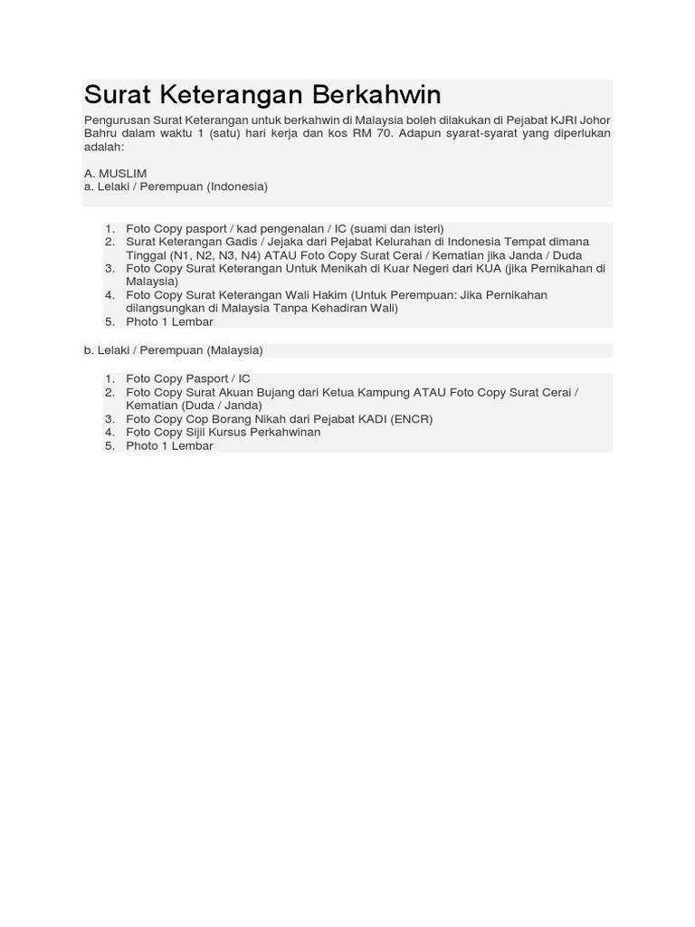Surat Keterangan Untuk Menikah Di Malaysia Cinta