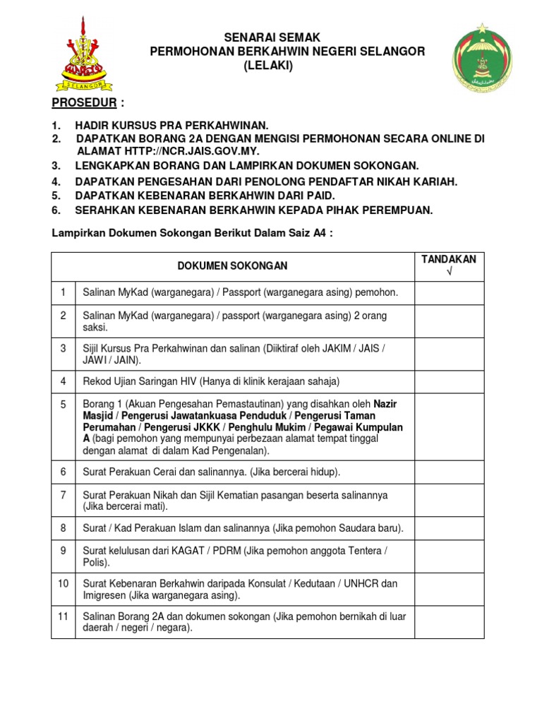 senarai semak borang nikah kedah