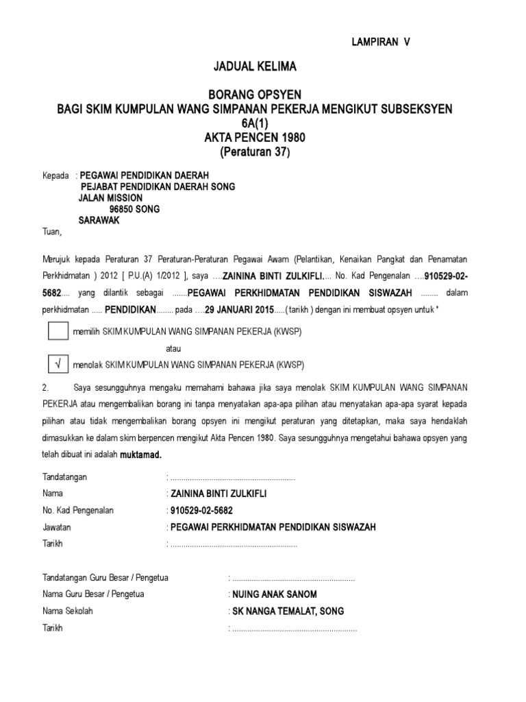 Http Spaj Johor Gov My V3 Pdf Borang 20opsyen 20kwsp 20p37 Pdf