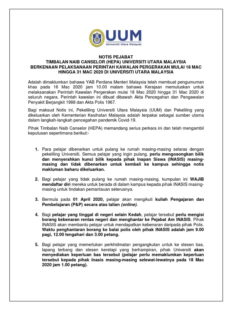 Notis Pejabat Tnc Hepa Pelaksanaan Perintah Kawalan Pergerakan Pdf