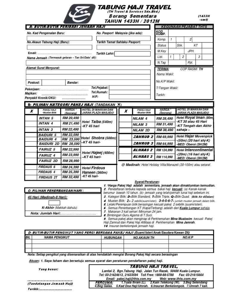 Borang Daftar Sementara Pakej Haji 1433h