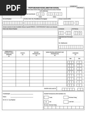 Borang Perkeso Docx Lampiran E Pertubuhan Keselamatan Sosial 2346248101 Peraturan Peraturan Am Keselamatan Sosial Pekerja 1971 Per 44a Caruman Gaji Course Hero