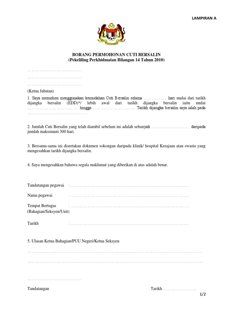2012 1 Borang Kemudahan Cuti Bersalin 90 Hari