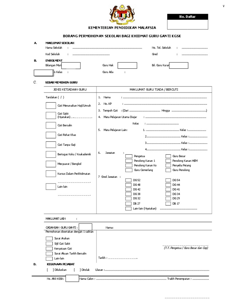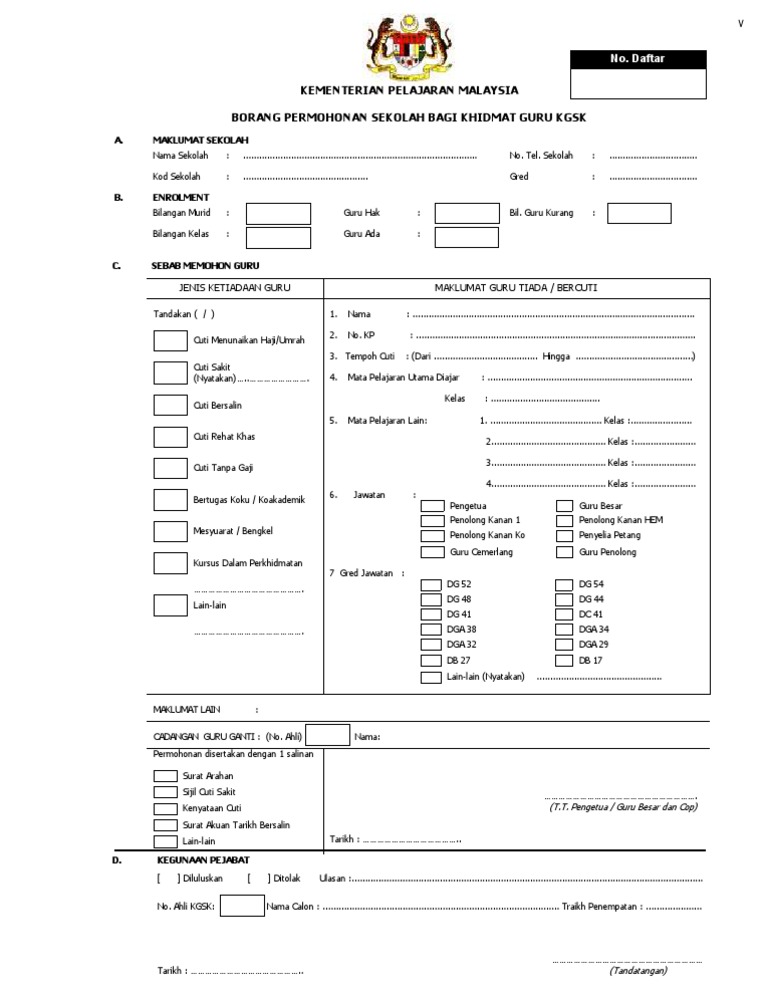 Borang Permohonan Guru Ganti Kgsk Pdf