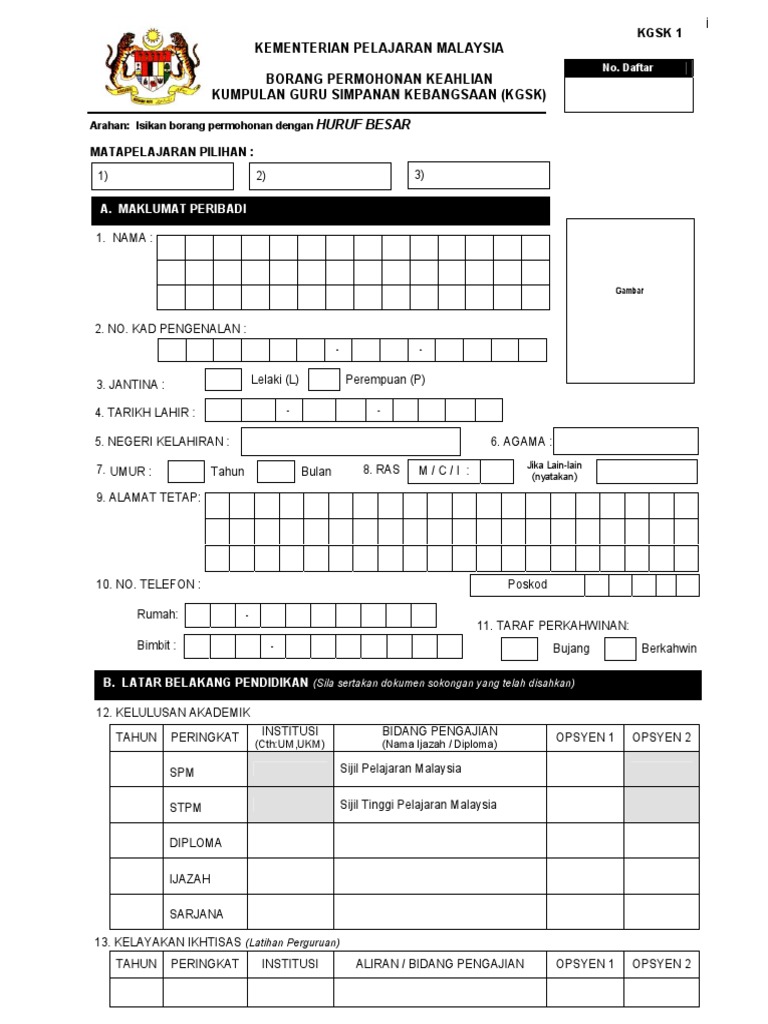 Borang Permohonan Guru Ganti Kgsk Pdf
