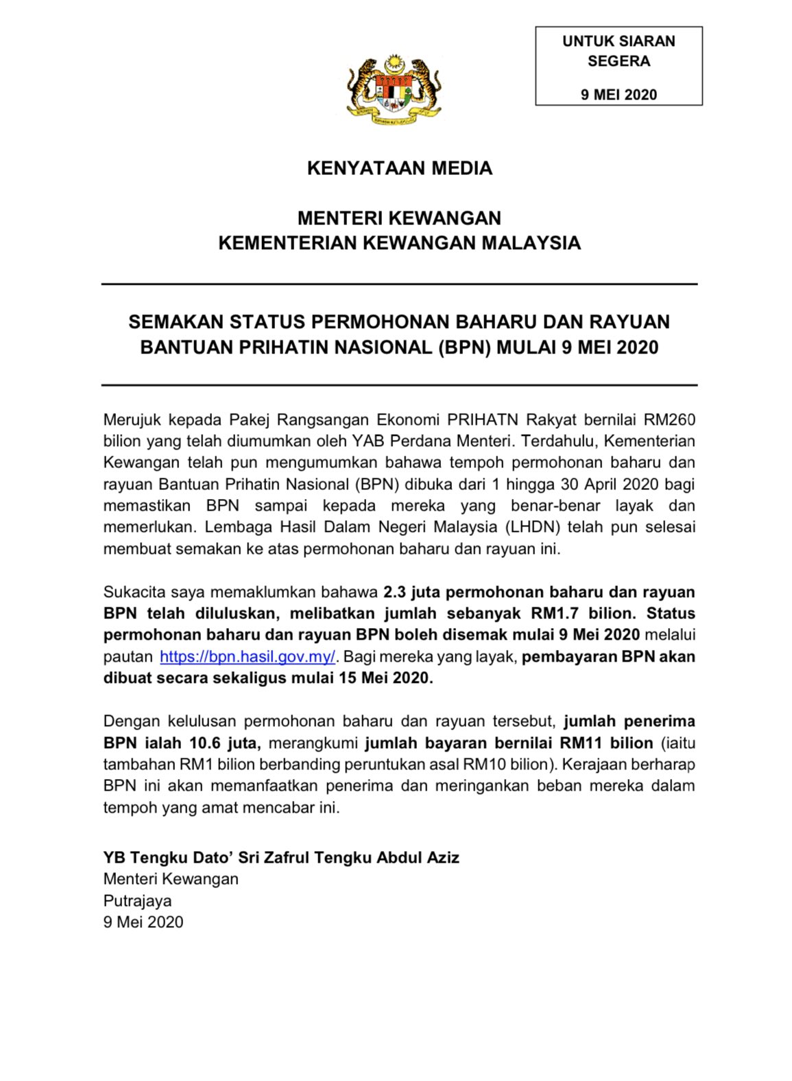 Kamaruddin Mape On Twitter Status Permohonan Baharu Dan Rayuan Bpn Boleh Disemak Mulai 9 Mei 2020 Melalui Pautan Https T Co Esb0yolbfc Bagi Mereka Yang Layak Pembayaran Bpn Akan Dibuat Secara Sekaligus Mulai 15 Mei
