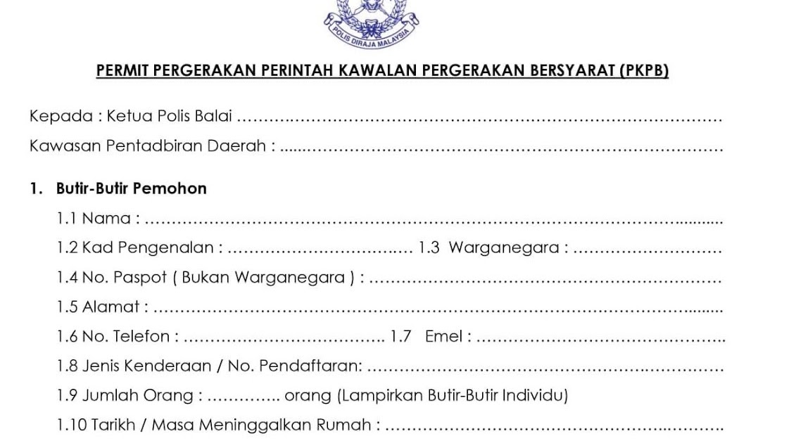 Muat Turun Borang Permit Pergerakan Perintah Kawalan Pergerakan Pkp