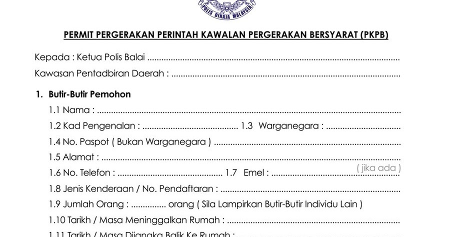 Terkini Borang Rentas Negeri Pkpb Pdrm Borang Permit Pergerakan