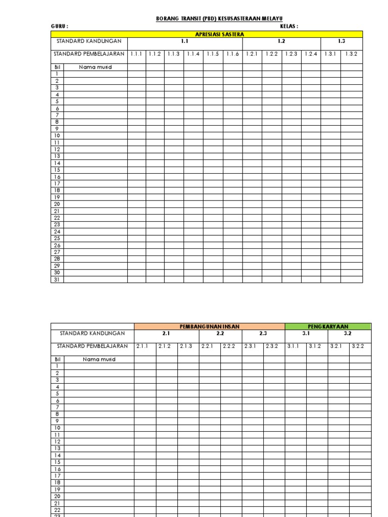 Borang Transit Pbd Bahasa Melayu Tingkatan 3