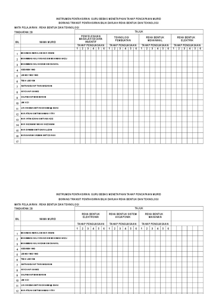 Borang Transit Pbs Ting 3 Rekod Kelas Xls Google Drive