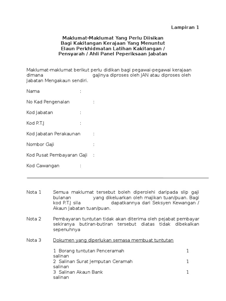 Borang Tuntutan Penceramah Institut Latihan Kehakiman Dan