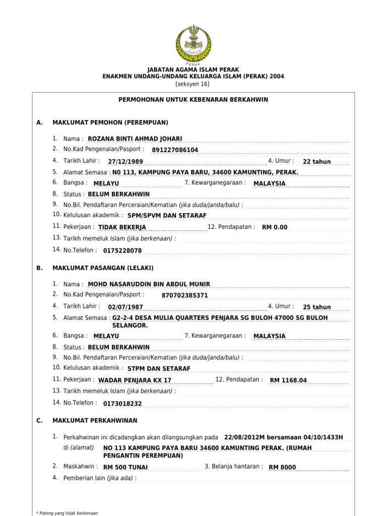 Sepet N Buchuknye Prosedur Permohonan Perkahwinan Pengantin Di Perak