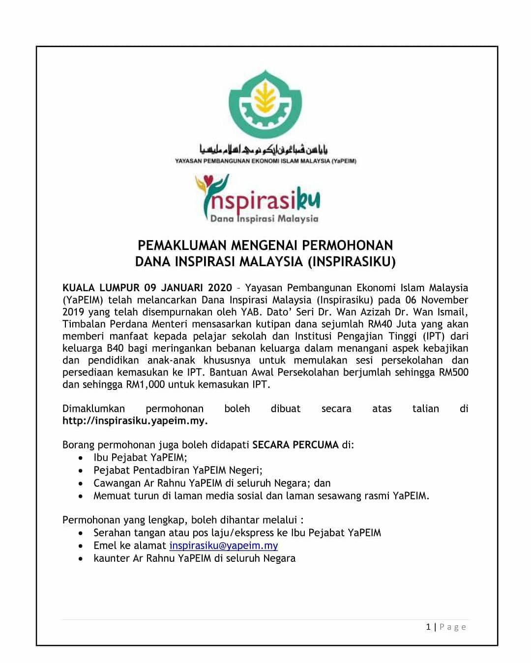 Yapeim Twitterren Kenyataan Media Rasmi Yapeim Berkaitan Pemakluman Mengenai Permohonan Dana Inspirasi Malaysia Inspirasiku Yapeim Memacukejayaanbersama Januari2020 Rahmah Rahmatanlilalamin Ingatkebajikaningatyapeim Kenyataanmedia