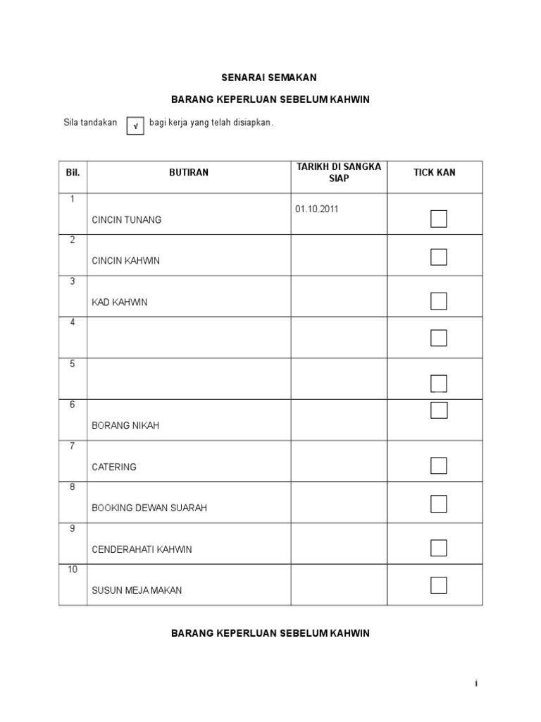 Senarai Semakan Kahwin