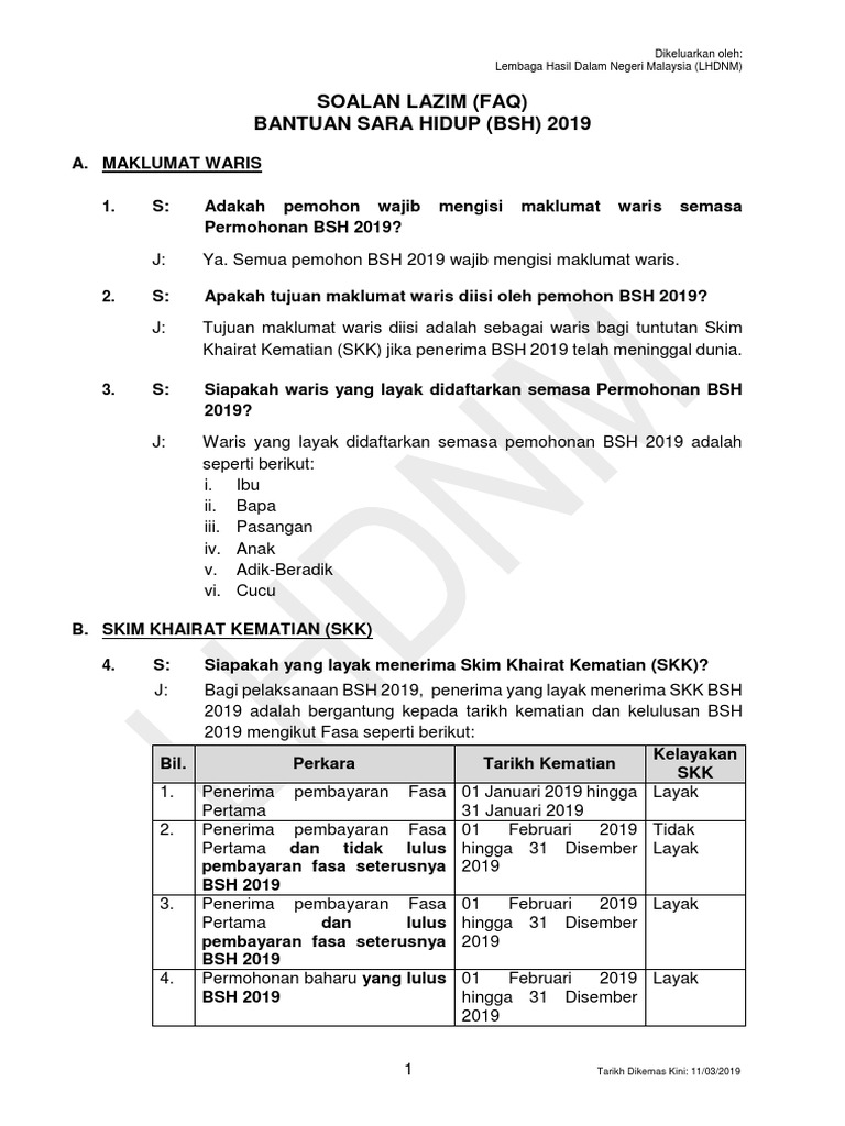 Bsh2019 Faq Maklumat Waris Dan Skk