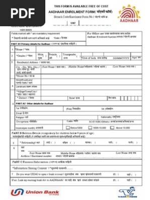 Aadhar Application Form Download Pdf E Aadhar Help