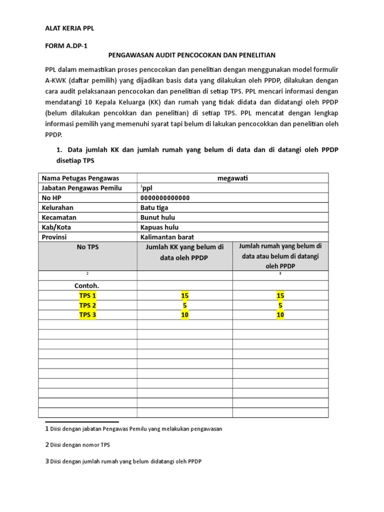 Alat Kerja Ppl Form A Dp 1