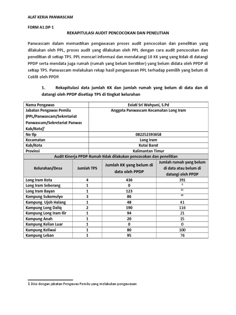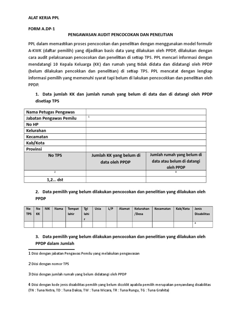 Alat Kerja Form A Dp 1 Coklit Desa