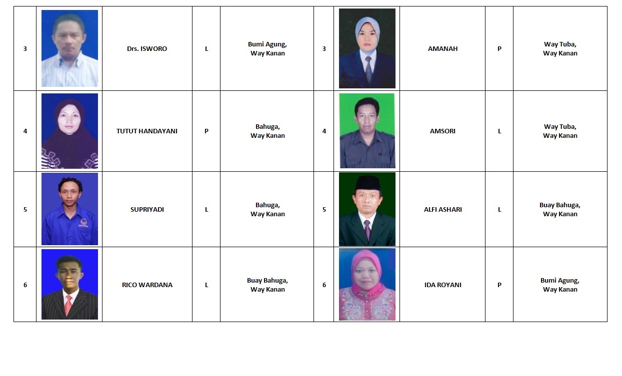 Kpu Way Kanan Daftar Calon Sementara Dcs Berdasarkan Form Model Be Daerah Pemilihan Dp 2