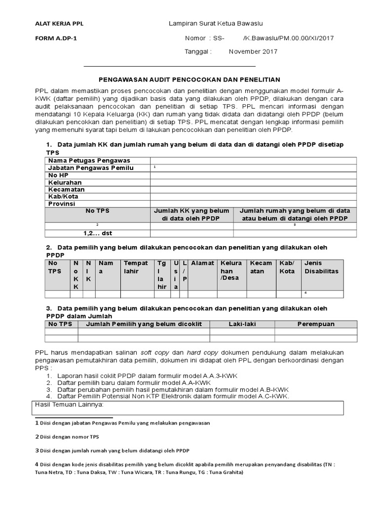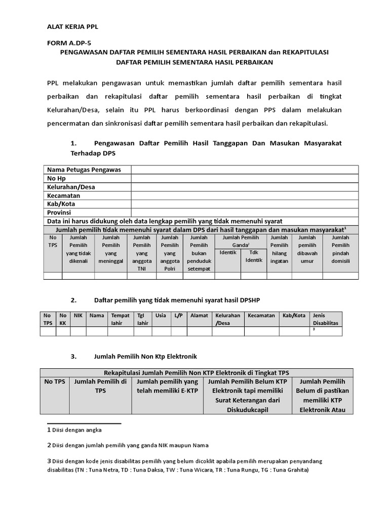 Alat Kerja Form A Dp 1 Coklit Desa