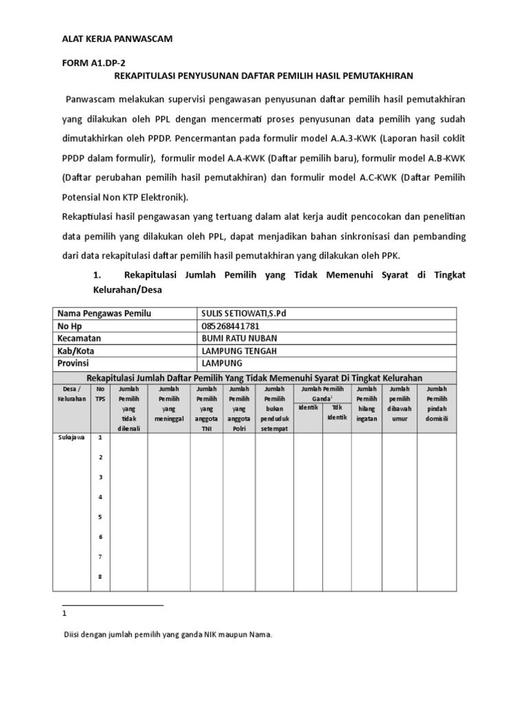 Doc 2 Rekapitulasi Pengawasan Penyusunan Data Pemilih Hasil Pemutakhiran Docx Zetry Sarira Academia Edu