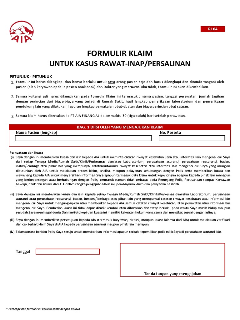 Form Claim Rawat Jalan Asuransi Aia 2015